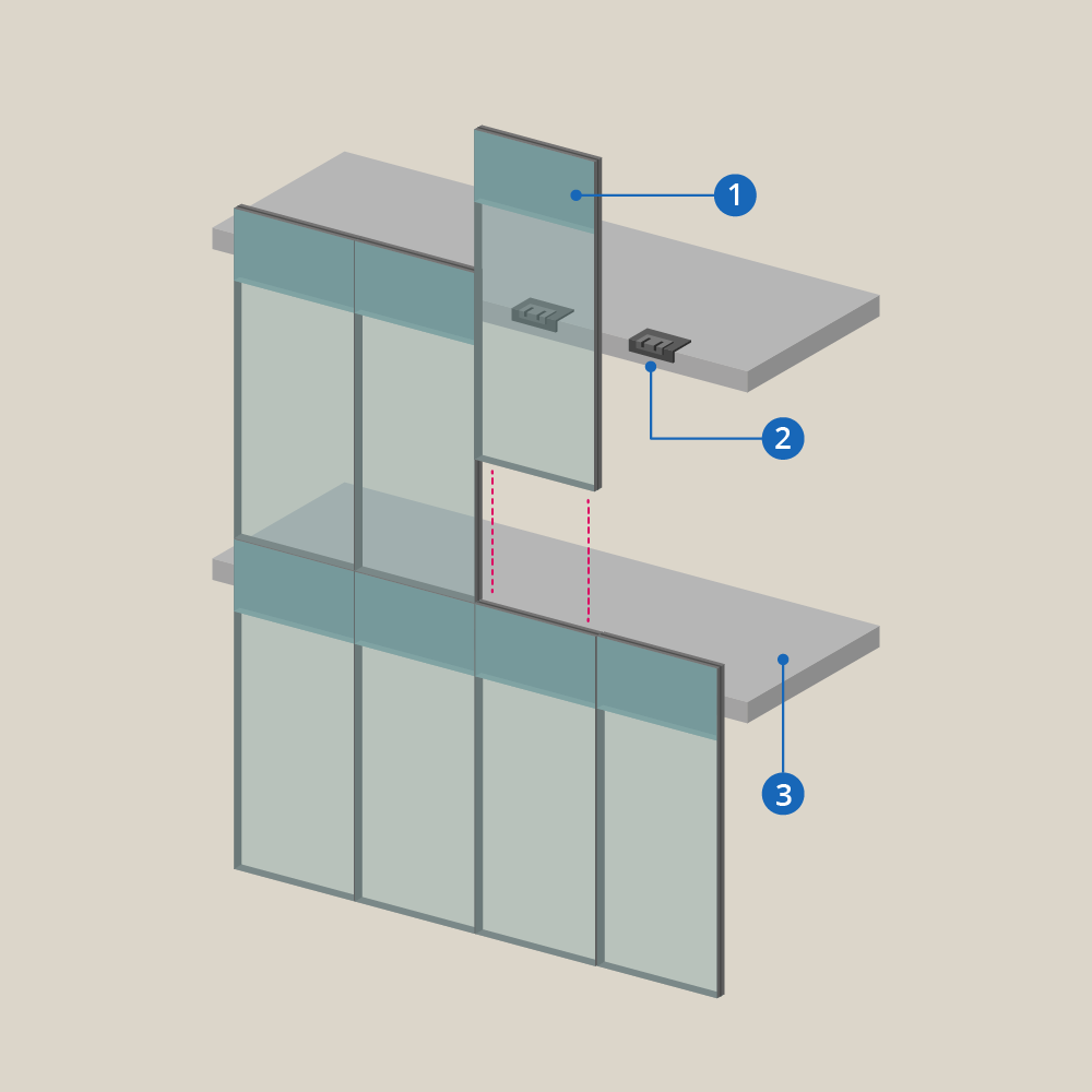* Obwohl das Glas den größten Teil der Vorhangfassadenoberfläche darstellt, hängen die Energie- und Schallsteuerungsleistung auch von der Leistung der anderen Elemente des Vorhangfassadensystems ab und davon, wie gut die Elemente alle zusammen als Baugruppe funktionieren.
