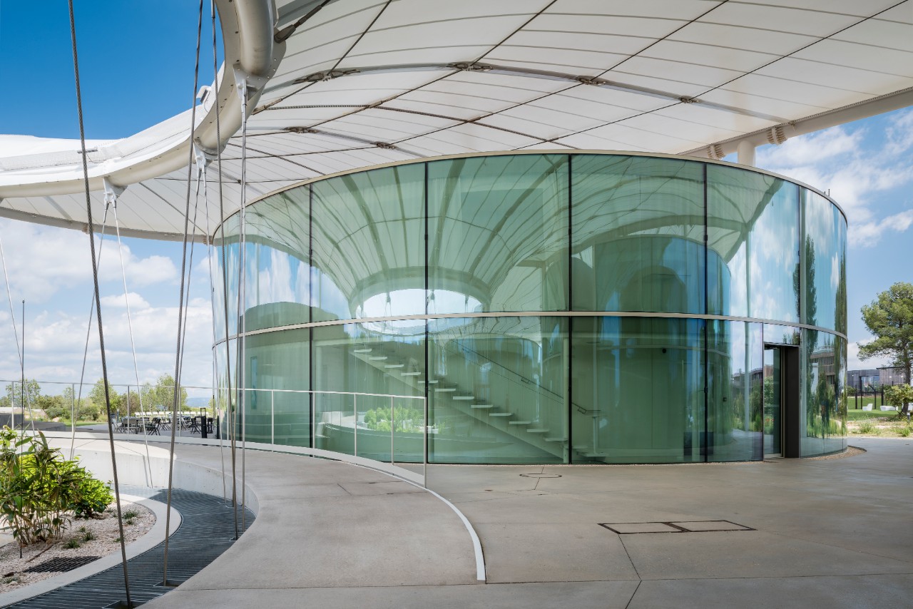 Het gebogen glas voor de hal en het amfitheater is Guardian SunGuard SuperNeutral (SN 70/37), een mooi, neutraal, transparant gecoat glas met een lage reflectie, consistente kleur, hoge zonnebescherming en hoge lichttransmissie.