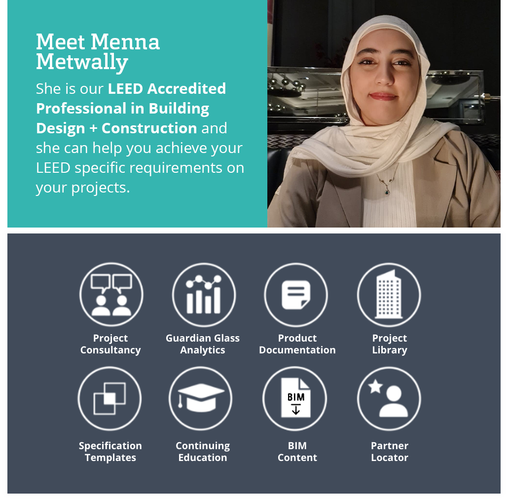 O nosso profissional acreditado LEED tem os conhecimentos mais recentes sobre estes princípios e práticas de construção, oferecendo-lhe apoio especializado para o ajudar a cumprir requisitos LEED® específicos. A nossa equipa está também a tornar-se LEED Guardian Tinted Glass Tinted Glass Associates e BREEAM® Advisory Professionals (AP - Design e Site) para apoiar os seus objetivos BREEAM.