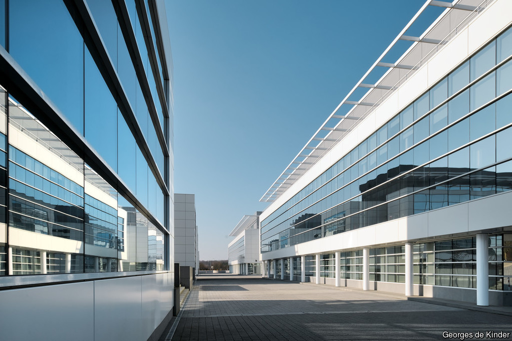 O vidro curvo oferece oportunidades para criar edificações espetaculares e impactantes, especialmente quando combinado com vidro que reflete o céu e a paisagem ao redor.
